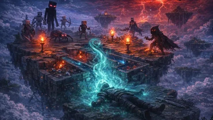 - Sadece Eşyalar Değil ⇒ HER ŞEY SİLİNİR: Hardcore modunda öldüğünüz anda size özel karanlık bir "Ölüm Sayfası" açılır. O saniyeden sonra gururla büyüttüğünüz adanız, kurduğunuz dünya ve harita... tamamen silinir. Lobiye omuzlarınız düşük dönersiniz!